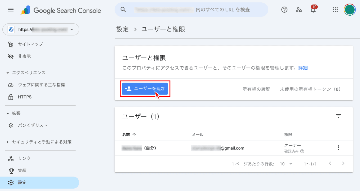 - 所有者(オーナー) 設定変更やユーザー管理(追加・削除)を含め、サーチコンソールの全ての機能を使える最高権限です。